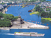 Koblenz is a city situated on both banks of the Rhine and the Moselle. The intersection of the two rivers is called "Deutsches Eck (German Corner)" and there is an enormous statue honoring the German Emperor Wilhelm I. It is the most popular tourist attraction in Koblenz. Have a look at these beautiful pictures, which are provided by my travel guide.
