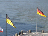 The Rhine and the Moselle meet at the Deutsches Eck. Each river differs in color, the water of the Moselle is darker than the Rhine and the water of the Rhine is cafe au lait!