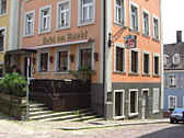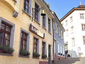 It consists of two buildings: a three-storied blue building and a two-storied beige building. There is a hotel reception in the blue one with guest rooms from the 2nd floor and up. The beige building is a local restaurant and there is a historical wine cellar and bar in the basement with a unique atmosphere.