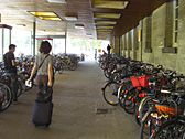 There were numerous bicycles parked in front of the station and it looked much like a typical university town.