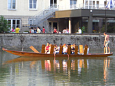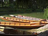 There is a famous punt boat race along the Neckar river in June. In summer, tourist season, boat tours are available as an attraction. From in front of the round tower on the bank, visitors can take boats like these long, punt boats. I highly recommend booking a seat in advance, otherwise you can't take a boat, like us.