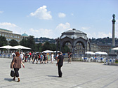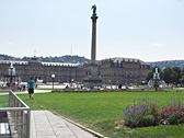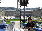 Schlossplatz is the heart of Stuttgart and it is in front of Neues Schloss (New Castle). There is a huge park with two wonderful fountains.