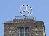 The station's building has a Mercedes-Benz's emblem on its roof top and it is easy to notice.