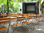I found a nice-looking beer garden on the way to my accommodation. It was covered with the lush greenery of the trees and it made a comfortable environment. In addition, there was a big screen for viewing the World Cup soccer game. On that day, it was on June 29, Japan played in Round 16 against Paraguay. Unfortunately, it seemed that the game between Japan and Paraguay wasn't attractive to locals and there were lots of empty seats!