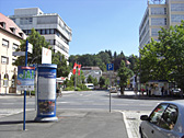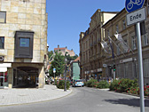 Following the road with your back to the station and turn left at the end of the T-junction and go along the road. Soon, you will arrive at the local shopping street, Langgasse. Langgasse is pedestrianised street leading to the main square in Kulmbach.