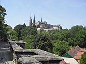 The hill on which the church stands is higher than the hill on which the Domplatz is located. From the church's property, you can enjoy a wonderful stunning view of Bamberg.
