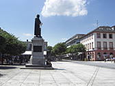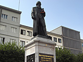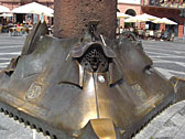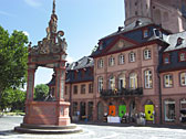 There are many interesting monuments in the market square, which is located in the center of the old city part of Mainz. One of them, is a bronze statue of Johannes Gutenberg, who was born in Mainz and, is credited with inventing the printing press.