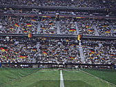 The huge board had a picture of a football field with supporters packed into the stadium! I knew that the sight was exceptionally unusual, but I wanted to glance at the famous tourist attraction behind it because I came there all the way from Japan!