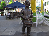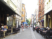 There were lots of outside tables along the streets and people were drinking beer while watching TV.