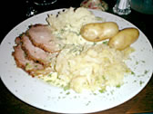 My friends and I went to a pub called Cookes. It seemed to be more like a restarant than a pub. There were some candles and lamp shades and I thought there would be a romantic atmosphere at night. I ordered Bacon & Cabbage. It was some bacon and boiled cabbage and it was served with a mountain of mashed potato, two boiled jacket potatoes and lots of chips. However potatoes are cooked the taste never changes. Potatoes are potatoes!! Something about eating potatoes is the same every time, even if they change the method of preparation. I can eat anything else, but not potatoes...