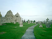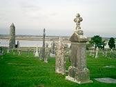 A week went by. I had started going to shcool and I got used to living in Galway. So I began thinking of visiting somewhere. I wanted to save Aran Islands and The Cliffs of Moher for a weekend and I searched for a place where I could visit on a weekday. And so I looked for a good plave in my guidebook. So I found a pub in my book, which is in Athlone and is identified by Guinness as the oldest pub in Ireland. I guessed there was no choice!! But it takes 1 hour to get to Athlone by train. I didn't know whether it was good idea to visit Athlone just to go to the pub. But I found the ruin called Clonmacnoise, which is the ruin of an eary Christian monastery from the 6 century, around the town. Visiting the oldest pub and the ruin of an eary Christian monastery. "It sounds good." According to my guidebook, there was no tour in this season and taking a taxi from Athlone was the only way to get there. It was much expensive than a tour, but there was no choice.
