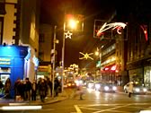 Dublin, on Friday night, was quite crowded. There were lots of cars, needless to say, lots of people. Some people with cigarettes walked on the crowded sidewalks so I couldn't walk in a straight line. Although there were lots of traffic lights there, people were still crosssing roads without a traffic light.