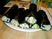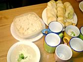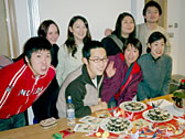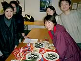 Maki-zushi(sushi roll) and Nikujaga(meat and potatoes). We cooked them at Mie's house the day before the International Food Festival. I thought that only Mie and Junko were able to cook them.... It was the first time I had met other Japanese students!