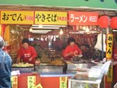 Food stalls There were lots of food stalls in Hirosaki-koen park. right:We could eat different kinds of food .