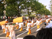 Dancers have to keep walking and dancing ahead. They can't dance in the same position, they must keep moving. It is a rule of Kochi Yosakoi.