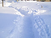 It was a sunny day. What do you think about this sidewalk? There were lots of animal trails, which looked like small animal.... Covered deep in 60-80cm high snow, was the sidewalk! There was only 20-60cm of trail to walk on.