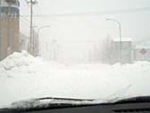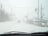 What a snowstorm! The condition was bad for driving. The center line had been covered with snow and there was only one traffic lane.