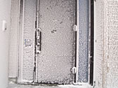 The door of our company. It looked like a inside of the freezer, which hadn't defrosted for about half a year.
