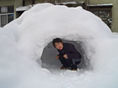 There was a car space next to our apartment and it was 60cm deep in snow. One day, I found a KAMAKURA(traditional snow dome) there. It was the first time to see a real KAMAKURA! It was not so big, I thought it was for kids and just one person could fit inside. If I cooled cans of beer in the snow inside the KAMAKURA, it must be delicious!
