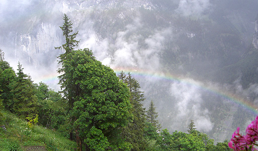 The mountains surrounding the village of Muerren were totally covered with clouds, or more like Muerren was in the clouds which hung low.