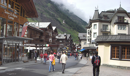The streets are lined with numerous restaurants and all sorts of shops and hotels. Of course in a typically Swiss fashion, there are many watch shops even though it is a small village in the mountains.