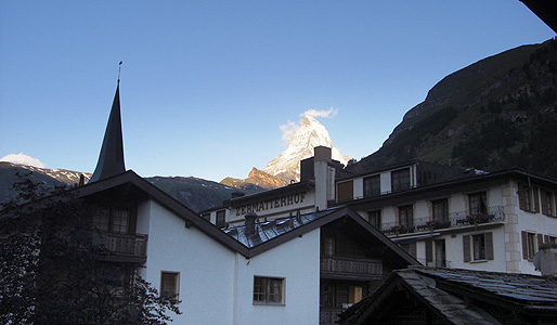 At the approach of evening, the clouds which had covered the mountains were gone and finally I could see the Matterhorn. I was lucky to stay in a room on the top floor because it was possible to see the Matterhorn from the window.