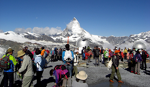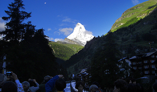Even if it was early in the morning, before 7:00a.m., the popular spot for tourists snapping shots of the Matterhorn was very crowded with Japanese people!