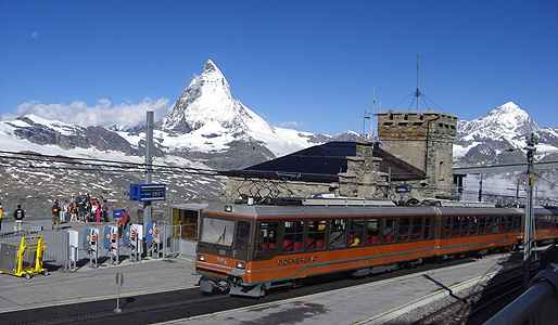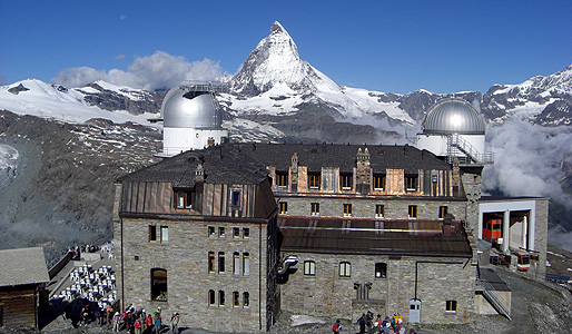 The highest hotel in the Swiss alps, "3100 Kulmhotel Gornergrat" is on the top of the Gornergrat. It looks like it would be a fantastic place to stay but BE CAREFUL not to get altitude sickness.