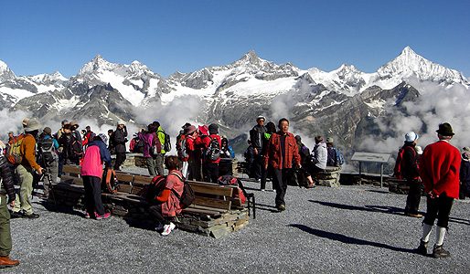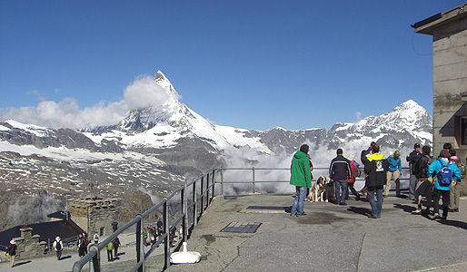 Perhaps, you can find photographers and St.Bernard dogs at the summit. Staff will take a picture of you and the dogs wearing barrels with the Matterhorn in the background. You can purchase the pictures 2 hours later at the store in the town of Zermatt. I spent my money well.