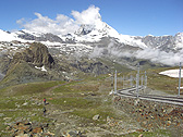 I walked a steep downhill along the railway with a direct view of the Matterhorn. It was an easy and exciting hiking trail but the surface of the trail is rough with rocks; a lot of caution should be taken while walking down.