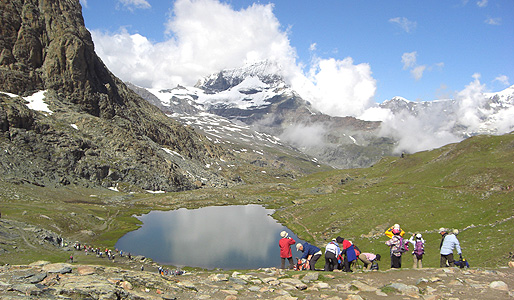 If you don't have much time you can take this short hike, by taking the Gornergratbahn to Rotenboden station(2819m) and then walking down to the Riffelsee. It is only a 5-minute walk.