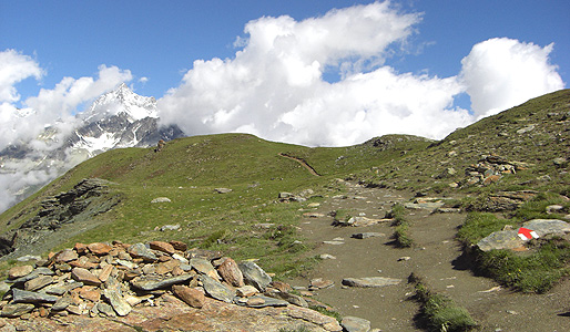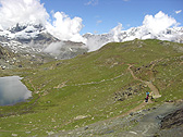 I kept on walking after the Riffelsee(2757m) and headed to Riffelberg station(2600m). There were several hiking trails and I chose one of the easiest trails. From the Riffelsee to Riffelberg station, it was about a 55-minute hike.