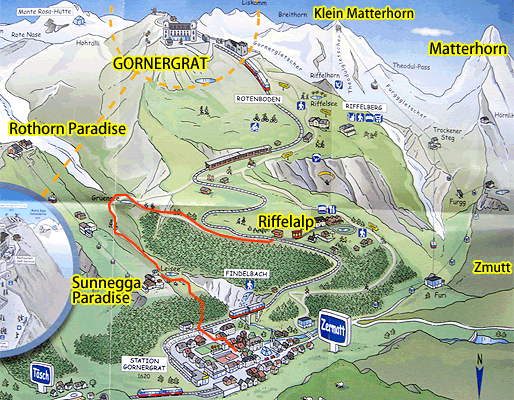 - Day 02 Rothorn Sunnegga - Day 03 Zmutt Gornergrat Rotenboden - Day 04 Gornergrat Rotenboden Riffelberg Riffelalp Klein Matterhorn - Day 05 Riffelalp-Sunnegga Findeln - Day 06 Trockener Steg Klein Matterhorn Schwarzsee Zmutt