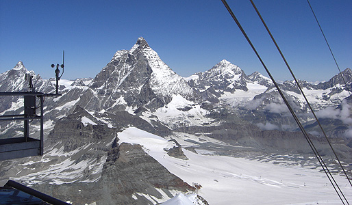 Trockener Steg(2939m), which is one stop before the summit of Klein Matterhorn, is a popular spot for shooting the pictures of the Matterhorn. The Trockener Steg region allows a much closer look at the Matterhorn and you can enjoy a complete view of the Matterhorn right before you!