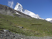 Seeing the Matterhorn on my left side, I walked down along the valley. Perhaps, the shape of Matterhorn is more familiar from Schwarzsee.