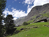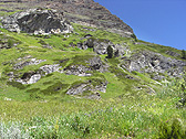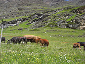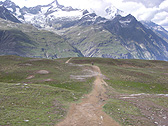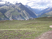 I followed more direct path to get to Zermatt and I kept on walking with my back to Matterhorn. I couldn't see the view of Matterhorn. However, as I hiked down, I enjoyed the typical Swiss scenery such as alpine meadows, cattle feeding, and marmots scuttling about.