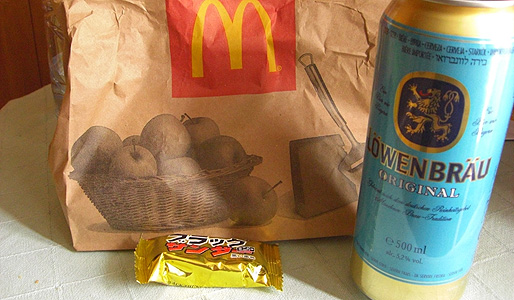 My dinner was probably the world's most expensive "Bigmac". But, the 500ml canned beer which I drank with it was cheaper than cheap. However, the total of the meal was still higher when compared to the price in Japan.