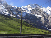 From Eigergletscher railway station, the train goes through a 7km long tunnel in Eiger and Monch, and there are two intermediate stations.