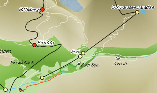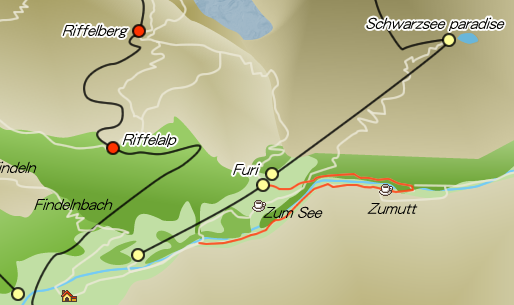 As you can see, Zum See is located just below Furi station and it's a 15-minute downhill walk from the station.