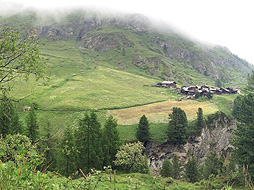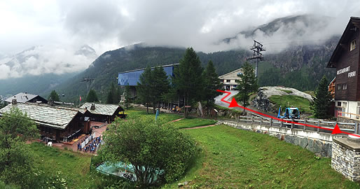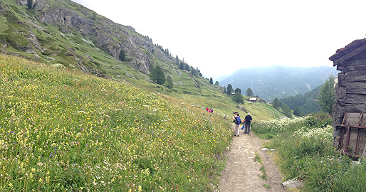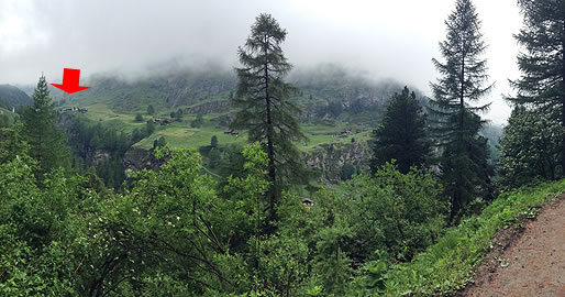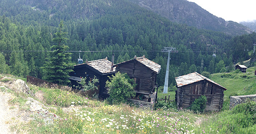 Zmutt was on the opposite side of the valley from Furi. It was just below the clouds and I didn't need an umbrella while walking.