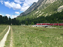 The hiking path between Diavolezza train station and Morteratsch train station stretched along the railway track. It is mostly flat and it is suitable for people in the beginner range.