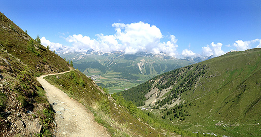 As I followed the panoramic trail round the mountain, the wonderful scenery of Engadin came into sight!