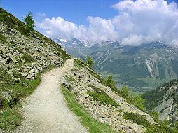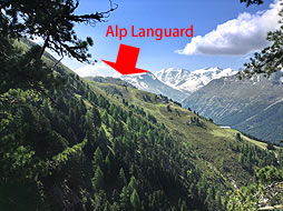 About an hour's walk brought me to the end of the scenic flat path and from there the trail to Alp Languard became a narrow mountain path between pine trees.