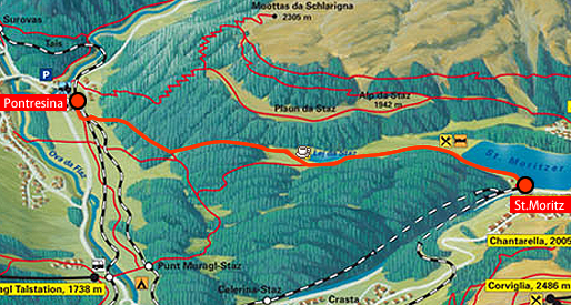Since I had some energy left after hiking between Ospizio Bernina and Alp Grum, I got off at Pontresina and I started to hike toward St.Moritz.