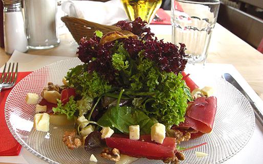 It was already past lunchtime and I finally got lunch at the restaurant built on the lakeside. I ate a special salad of locally made ham and cheese, and other toppings. It was delicious but the price was really high, 29 euros!! It was a kind of reward for me for walking a good deal however it was my first time eating such an expensive salad!