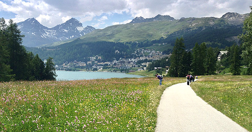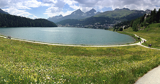 I walked along the well-kept trail for about 30 minutes from Lake of Staz, and soon came to Lake St.Moritz.