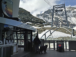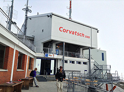 It took about 20 minutes from St.Moritz to Corvatsch station in Surley by local bus and it was a 15-minute ride on a cable car from there to the top of Corvatsch via Murtel station.