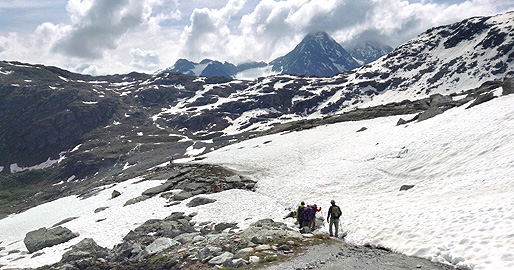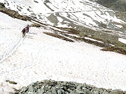 My personal motto is "A wise man does not get near to danger". However I guess that I was high on overseas travel and I started following after the other hikers toward Furcola Surlej. Now if I think about it, I must have had a screw loose!