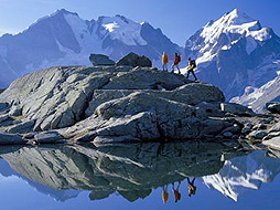 A small pond located at the mountain peak is why Furcola Surlej is called the best scenic spot. Famous mountains are reflected in the pond and the beautiful glacier lies in the distance. Of course, if the weather is good, you can enjoy it as shown in the image on the right.