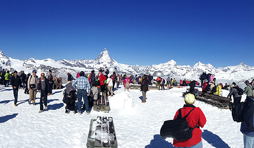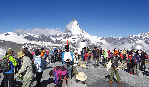 The first train from Zermatt had been crowded wtih Japanese tourists. Also, just as I expected, the viewing platform at the summit was full of Japanese.